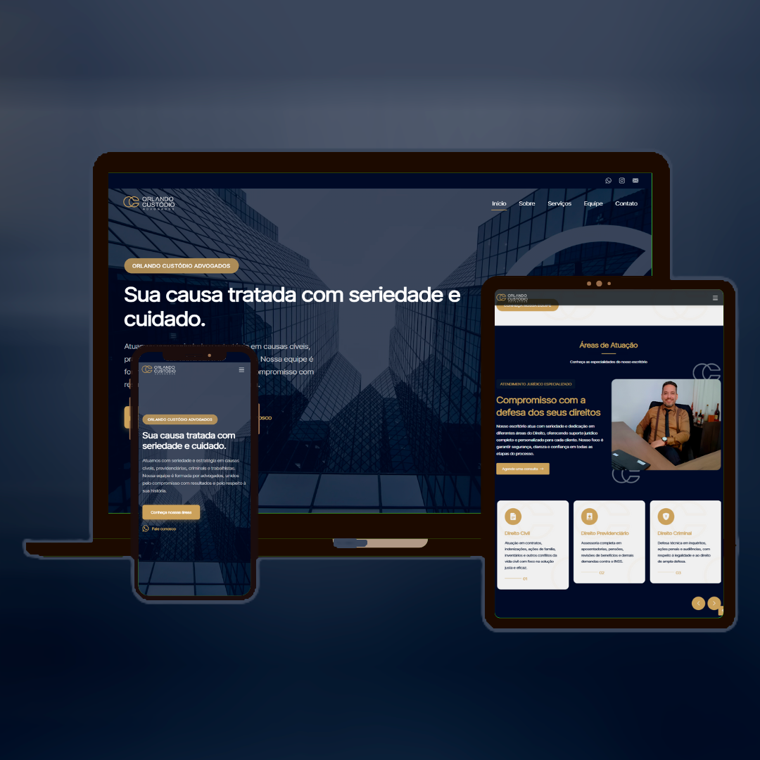 Nossos sites funcionam perfeitamente em qualquer dispositivo, do celular ao computador, sempre com boa leitura, acessibilidade e usabilidade.